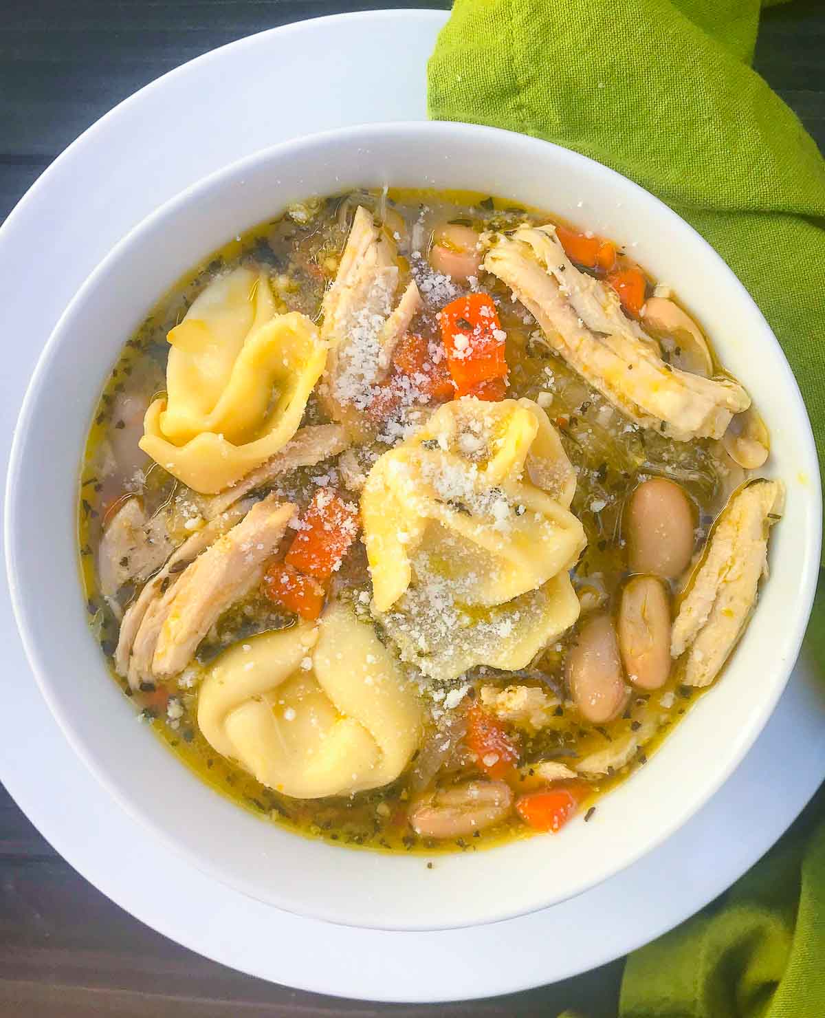 - Hearty – Made with cheese-filled tortellini, chicken, and white beans, this soup will keep you full for hours.