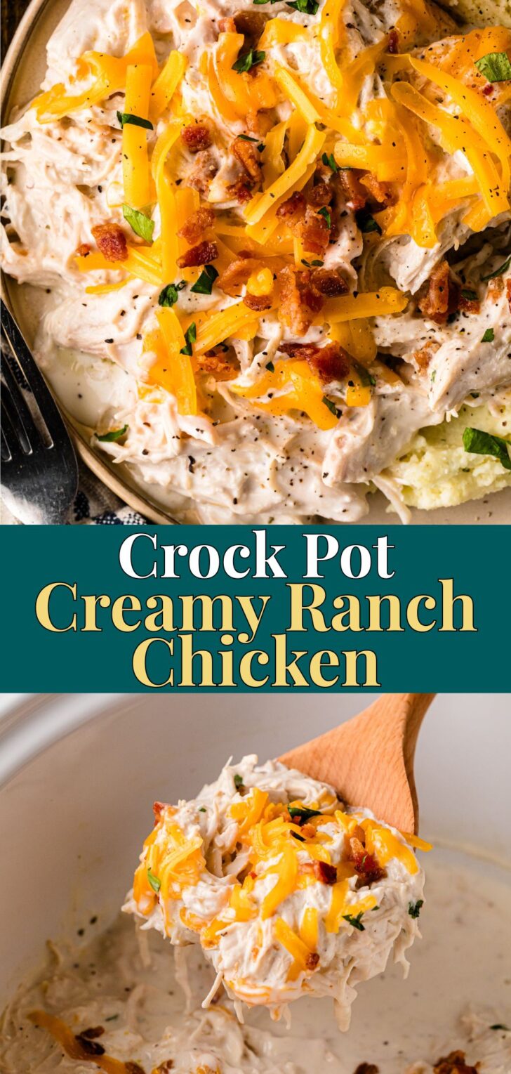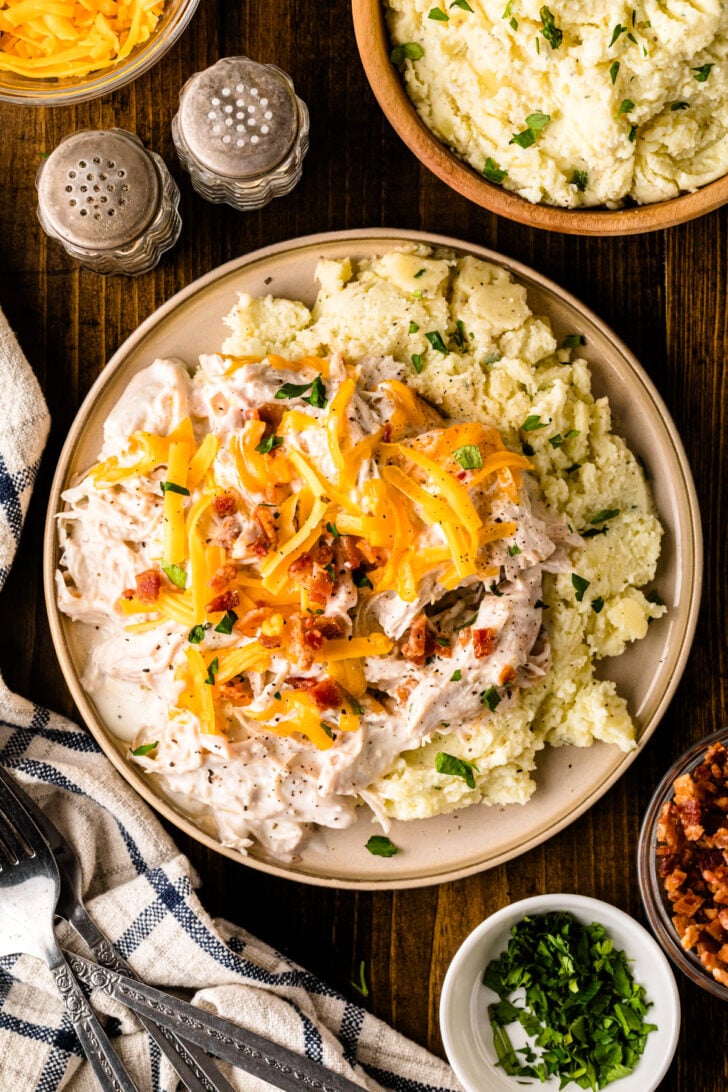Shredded cheddar cheese: Turns this into a cheesy ranch chicken situation that’s extra cozy over potatoes, rice, or noodles.