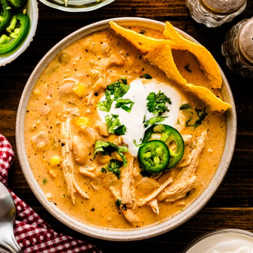 A big bowl of this hearty soup is so good with Garlic Parmesan Skillet Rolls or Garlic Knots for dipping. You can also pair it with this super simple caprese salad for a cooling complement to the warm soup.