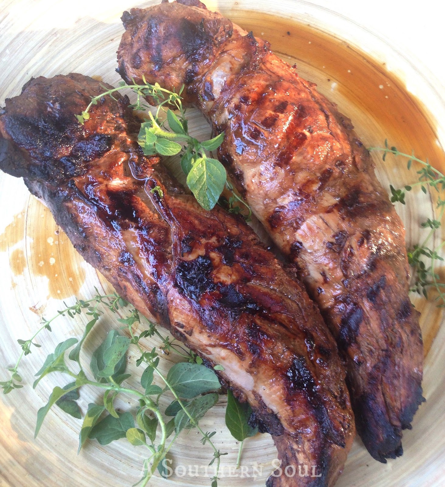 About a week ago, I knew everyone was going to be home for the evening. I’d picked up a pork tenderloin at the grocery and with fresh herbs growing right outside my backdoor along with weather that was perfect for grilling, I had the makings of something delicious. I threw together a quick marinade that included oregano, rosemary and thyme along with olive oil, garlic and balsamic vinegar. After marinating the pork in this savory mixture for about an hour, it was time to get cooking.