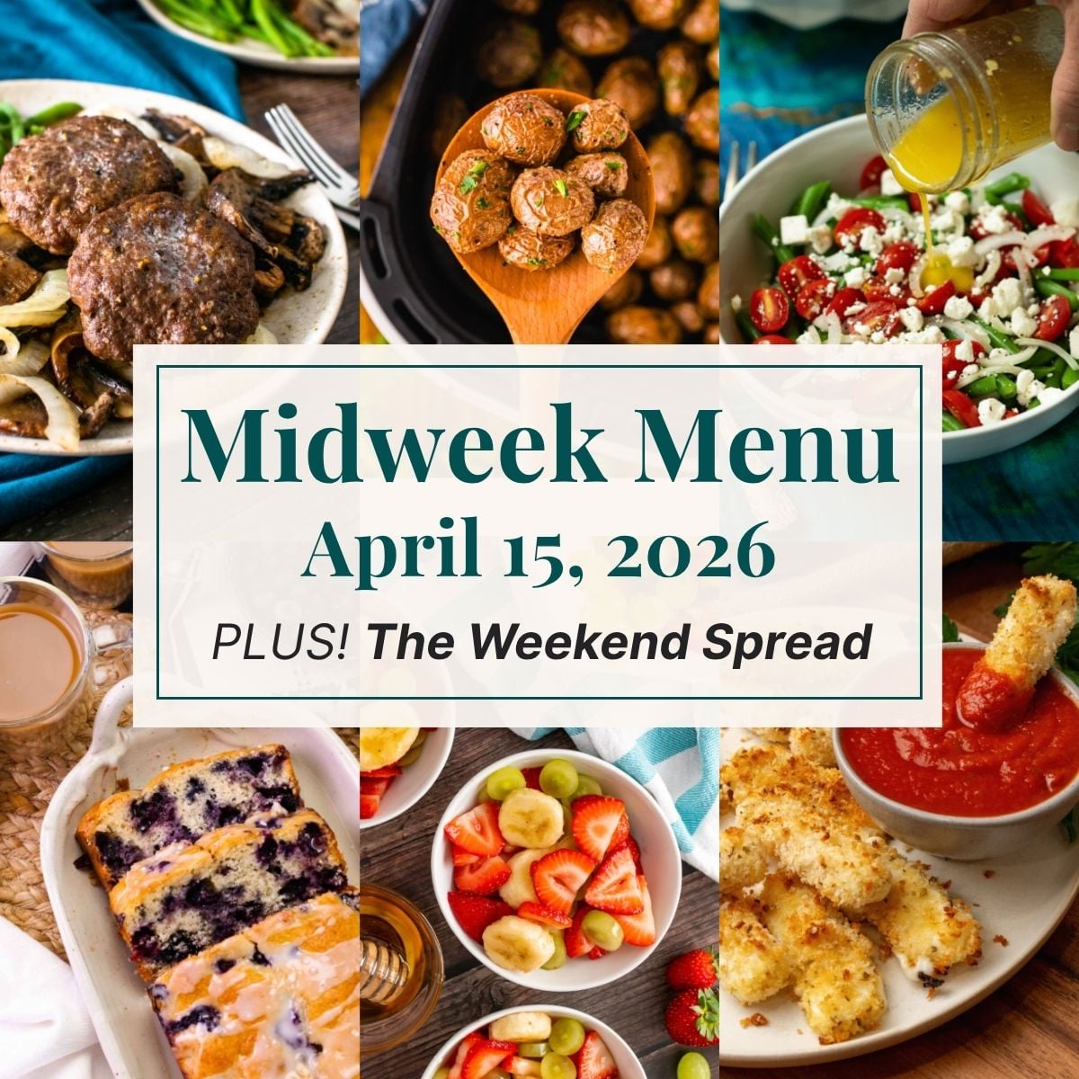 Helping you answer the question: “What’s for dinner?” This week we are making sheet pan hamburger steak with mushroom and onions, air fryer baby potatoes, simple green bean salad, and blueberry bread with a lemon glaze for dessert.