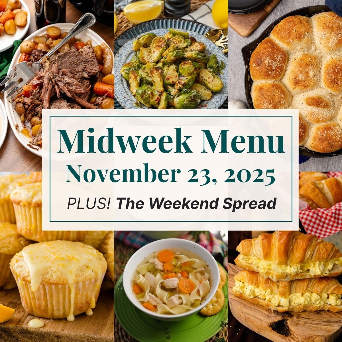 Since it is going to be a busy holiday week full of grocery shopping, getting the house guest ready, and cooking, we have an easy meal plan for you! This week we are making crock pot roast, with your choice of broccoli or Brussels sprouts, and shortcut garlic Parmesan skillet rolls.