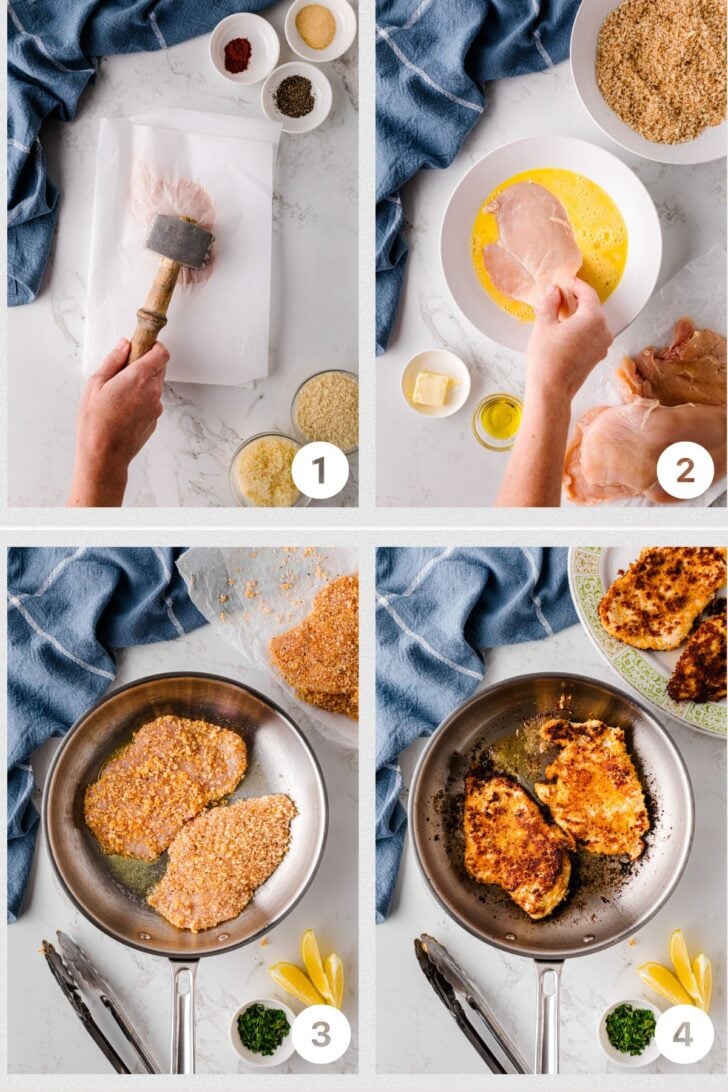 - Don’t crowd the pan. Give each chicken cutlet room to cook so the crust stays crisp, not soggy.