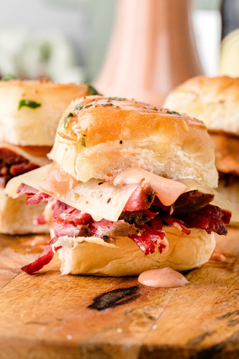 If you love a classic Reuben sandwich, you will love these Corned Beef Reuben Sliders! The classic ingredients like corned beef and sauerkraut are paired with a tangy dressing and then cooked low and slow in the crock pot. They are easy to make but hard to resist, making them perfect for serving at parties, covered dish suppers, and, of course, St. Patrick’s Day!