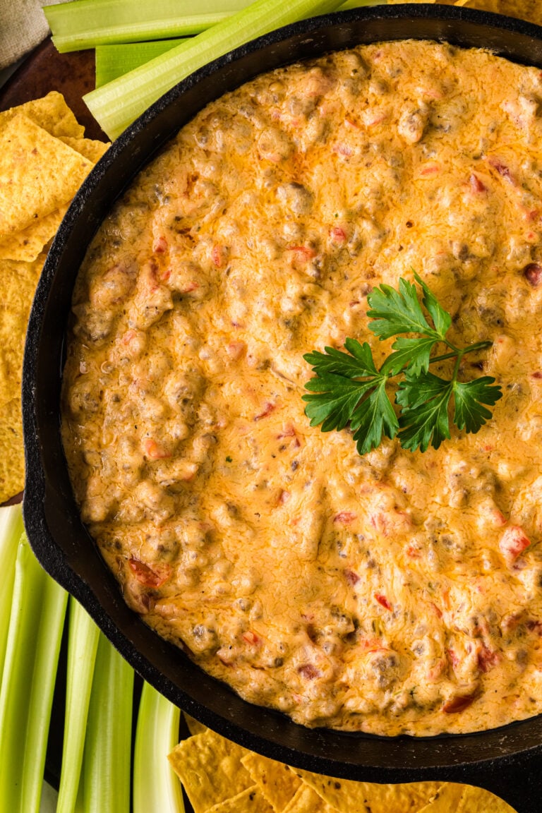 Three-ingredient Spicy Sausage Dip is the perfect (and quick) appetizer to whip up for your next party, game-day gathering, potluck, or snack on over the weekend. Delicious, homey ingredients are combined for a taste that will leave everyone wanting more.