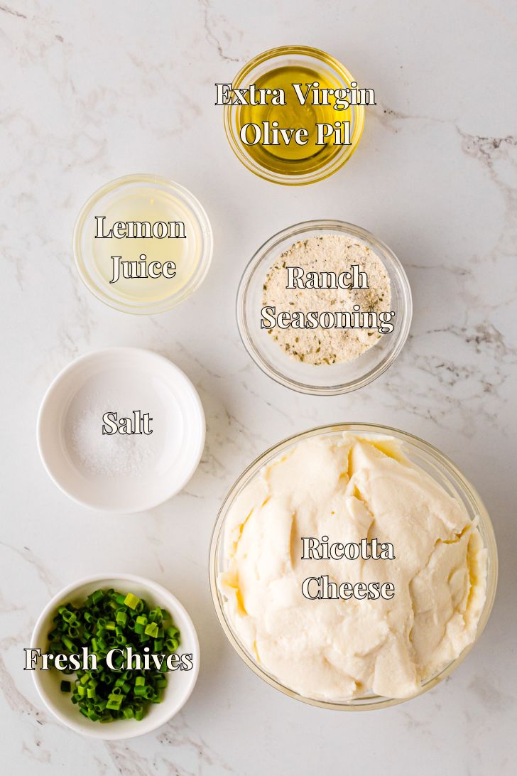 - Whole Milk Ricotta Cheese – gives this dip its ultra-creamy, whipped texture.